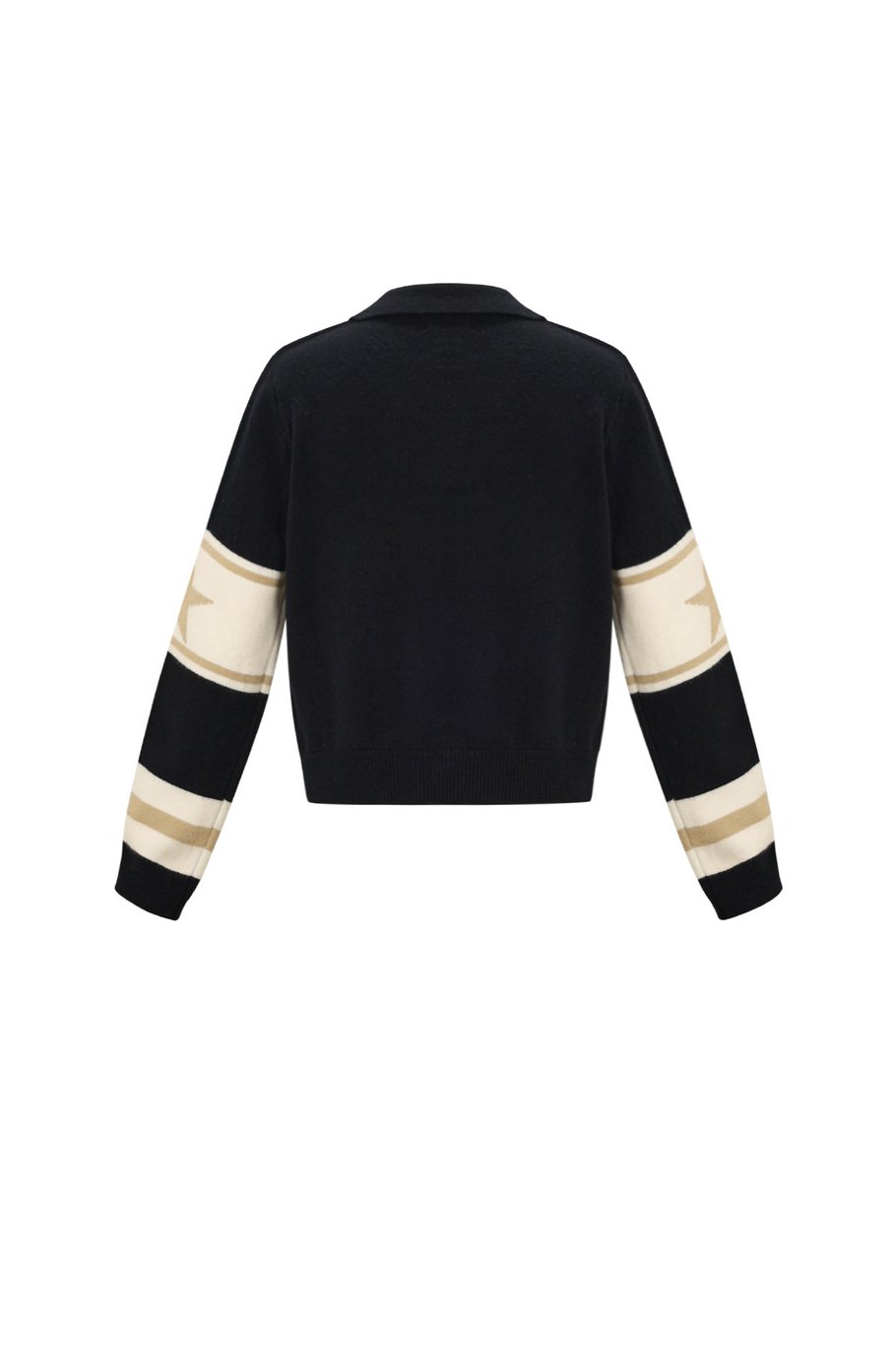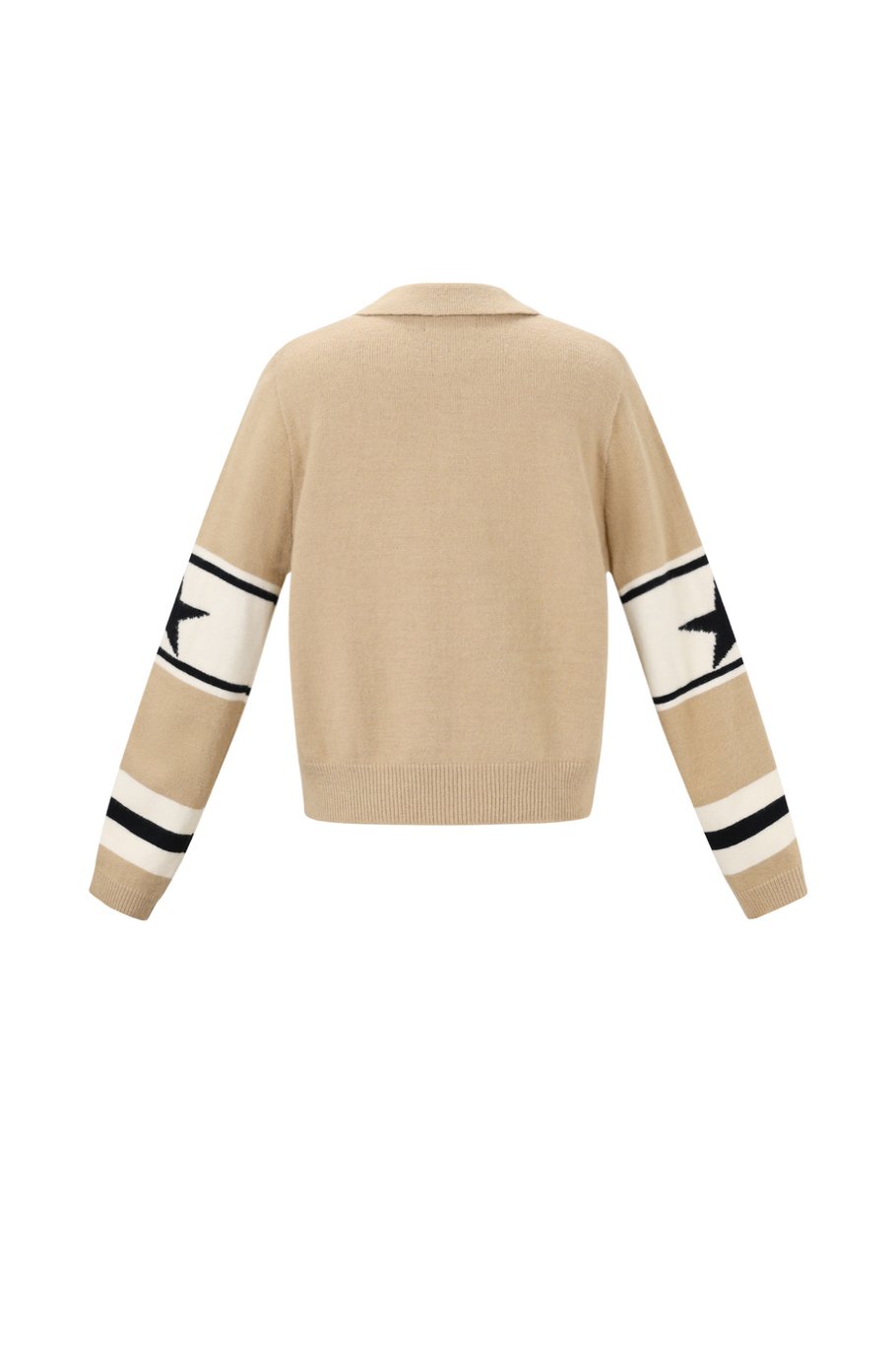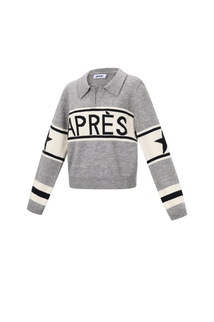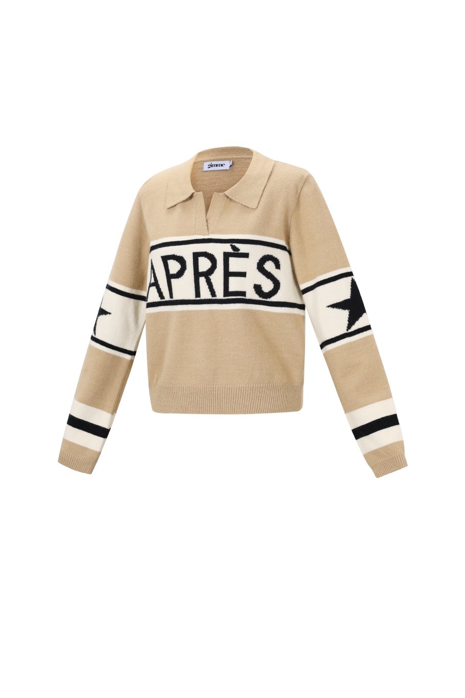 Een kort truitje met lange mouwen en après ski print met strepen en sterren op de mouwen.