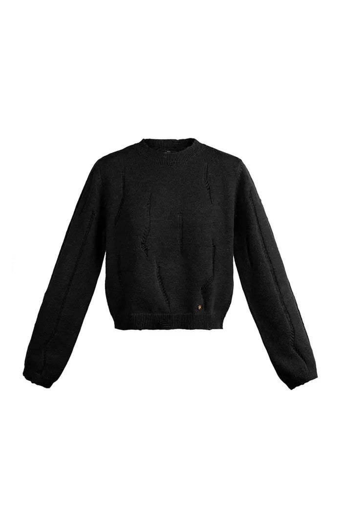 Op zoek naar de perfecte trui met opengewerkte ajour details voor de herfst en winter? Dan is dit het item voor jou! Combineer deze cropped trui met een leren broek of pantalon en je bent ready to go.