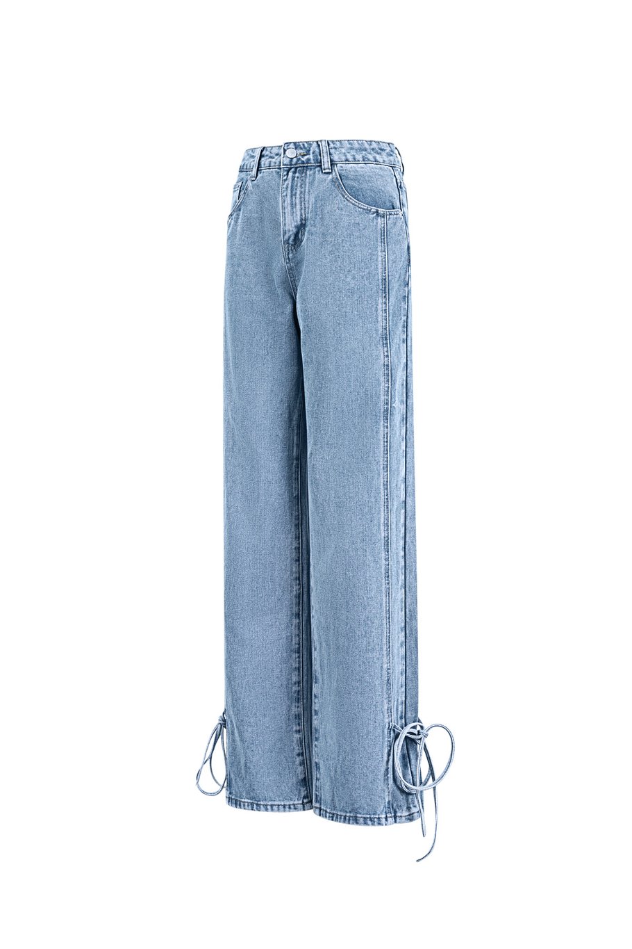 Een jeans met lange wijde broekspijpen. De broek heeft voor- en achterzakken. De onderkant van de broekspijpen is verstelbaar door de striklinten. Een hippe, eigentijdse dames jeans.
