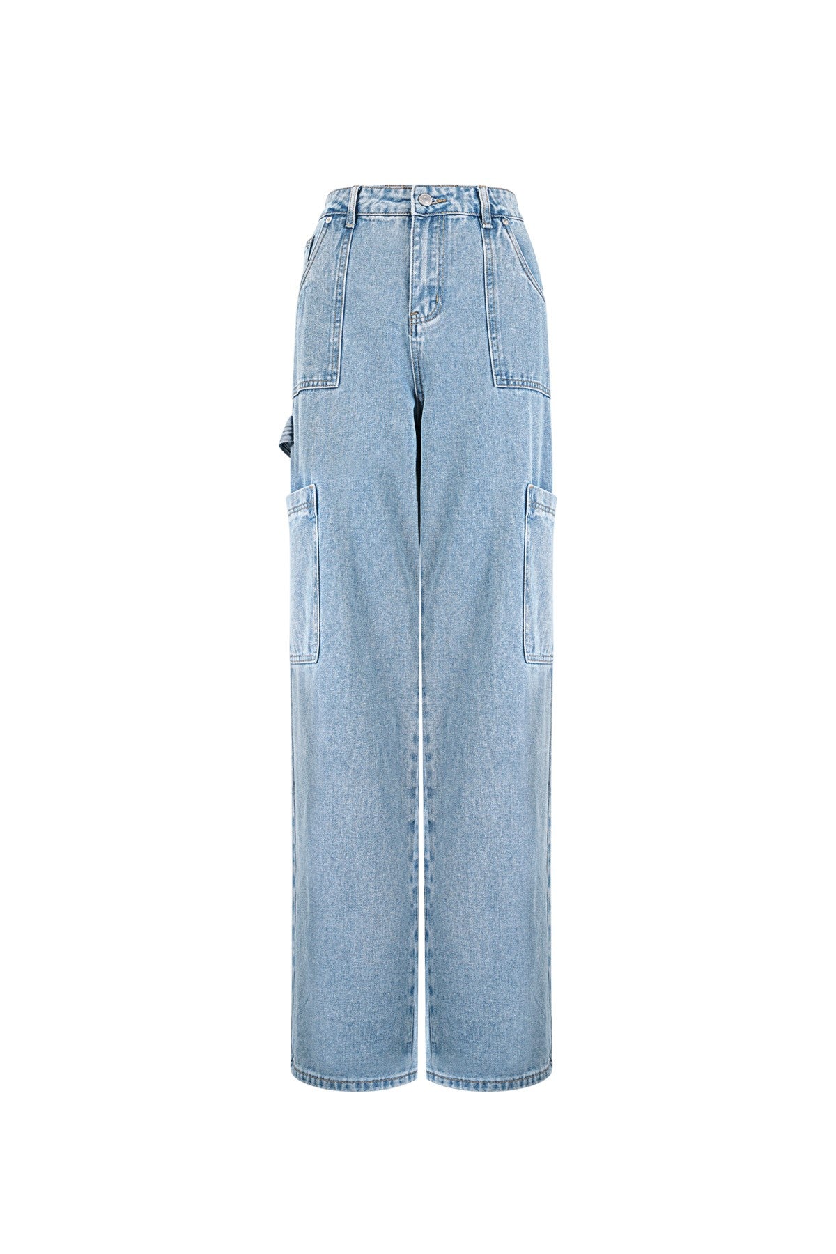 Een cargo jeans met zakken en een grote lus aan de rechter zijkant. De pijpen zijn recht en wijd. Een heerlijke spijkerbroek, die casual te stylen is met een sweater of wat gekleder met een blouse en blazer.