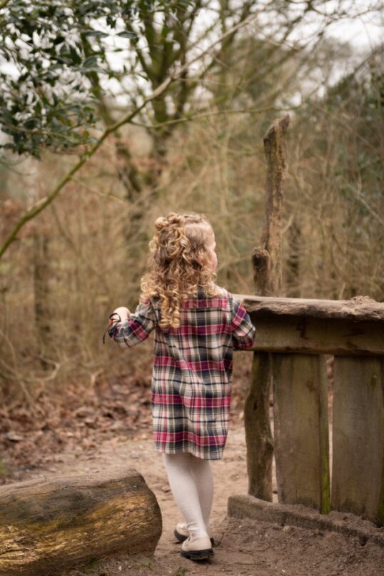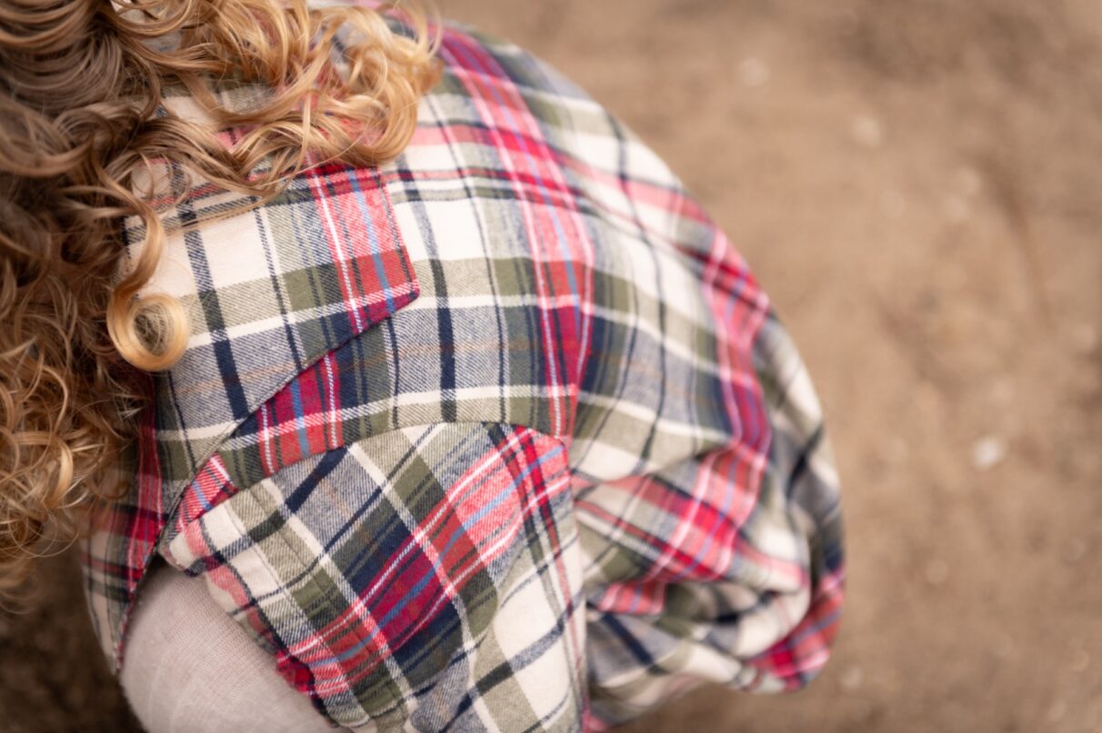 Een mooie meisjes jurk voor de herfst van een gekamde katoenen ruit.