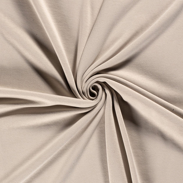Een jurk van een alphen fleece stof met lange mouwen, ronde hals en de roklengte is mini. Het bovenste gedeelte van de jurk is in de taille gerimpeld aan de gladde rok.