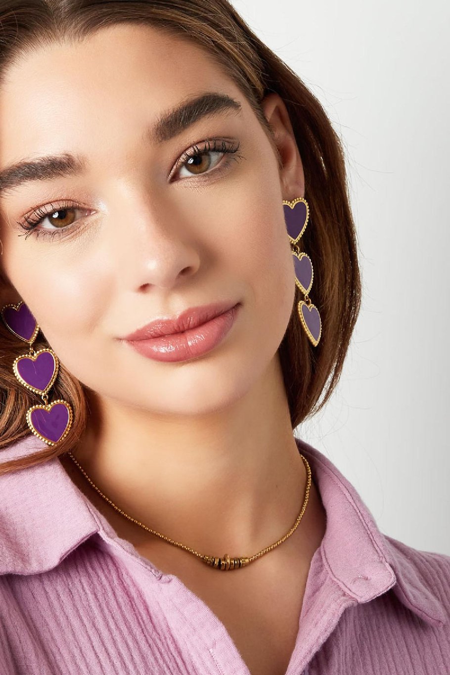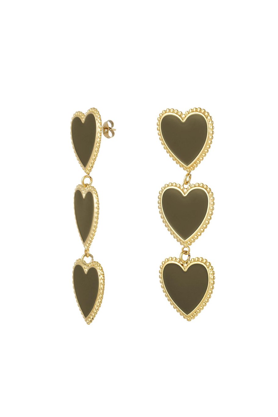Hoe tof zijn deze gouden statement oorbellen met drie sierlijke hartjes op een rij! De oorbellen zijn voorzien van een prachtig randje om de hartjes. Superleuk om jouw outfit af te stylen en deze oorbellen te combineren met meerdere accessoires!