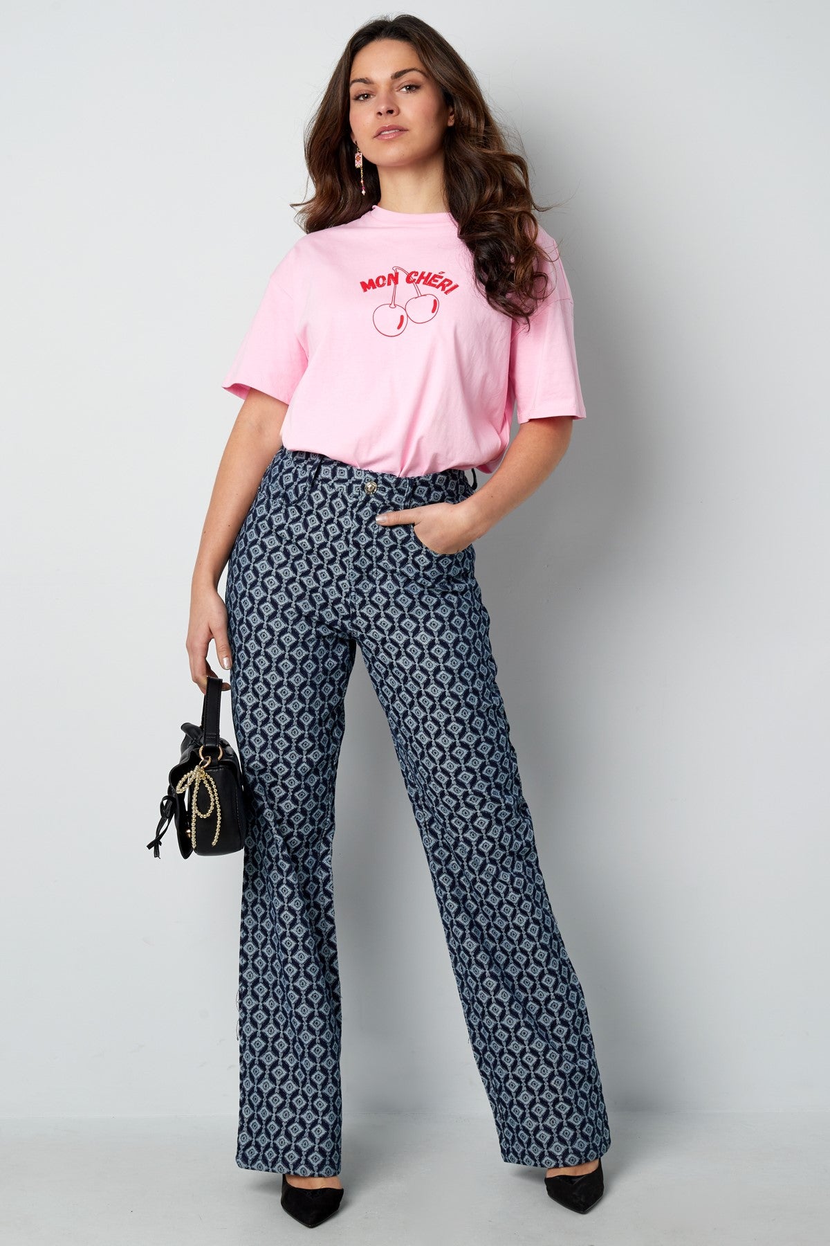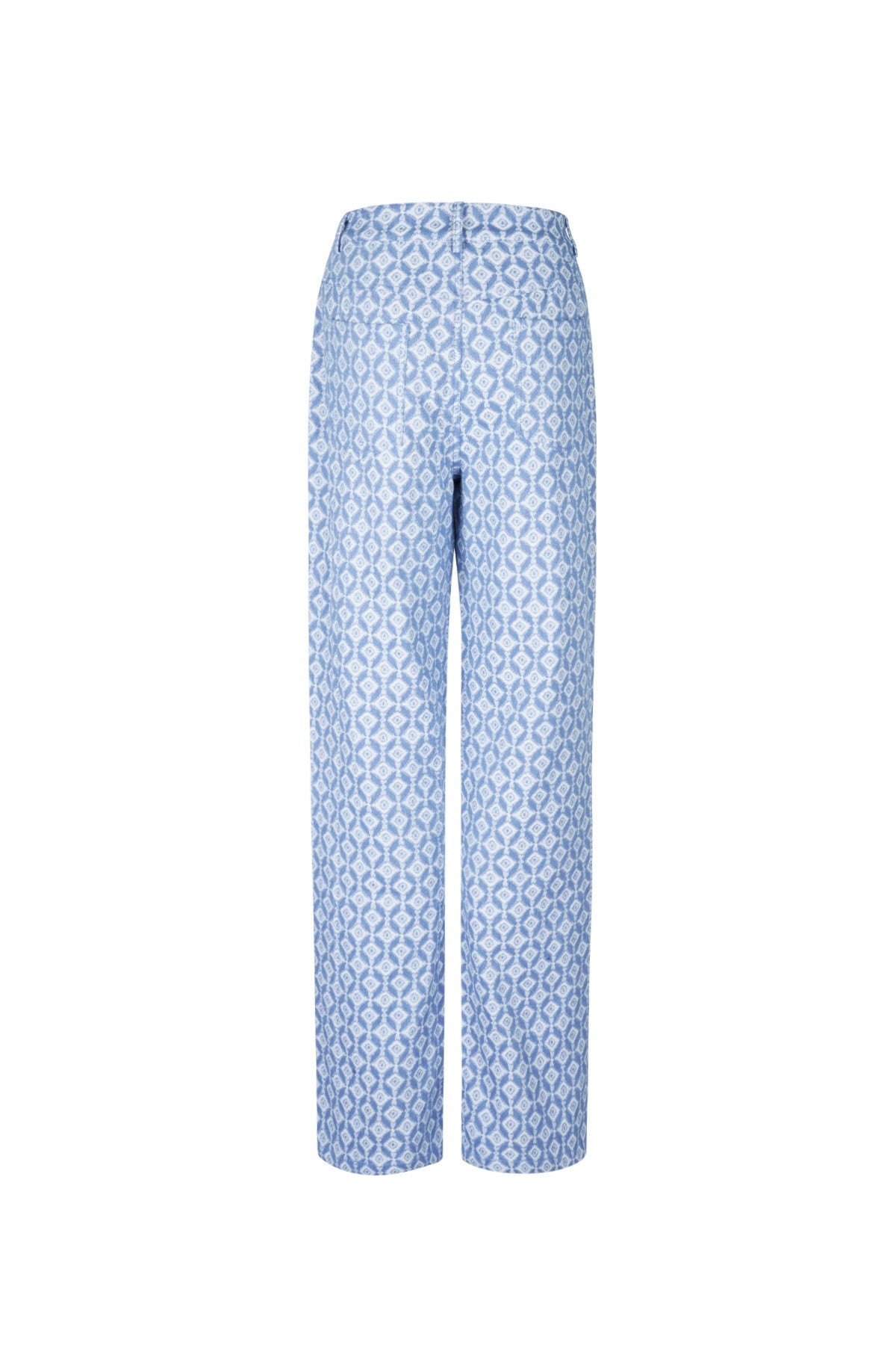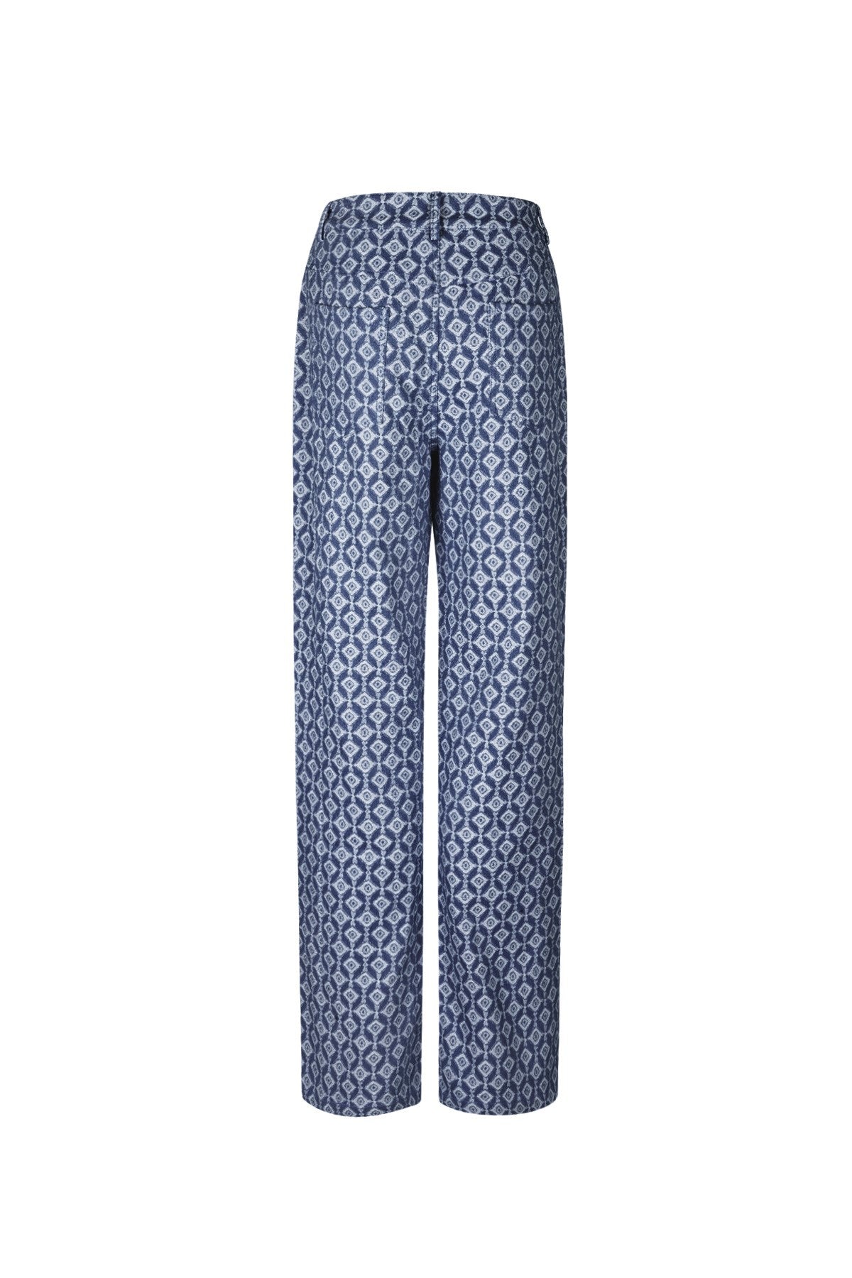 Dames spijkerbroek met steek- en achterzakken in een jacquard ruit motief.