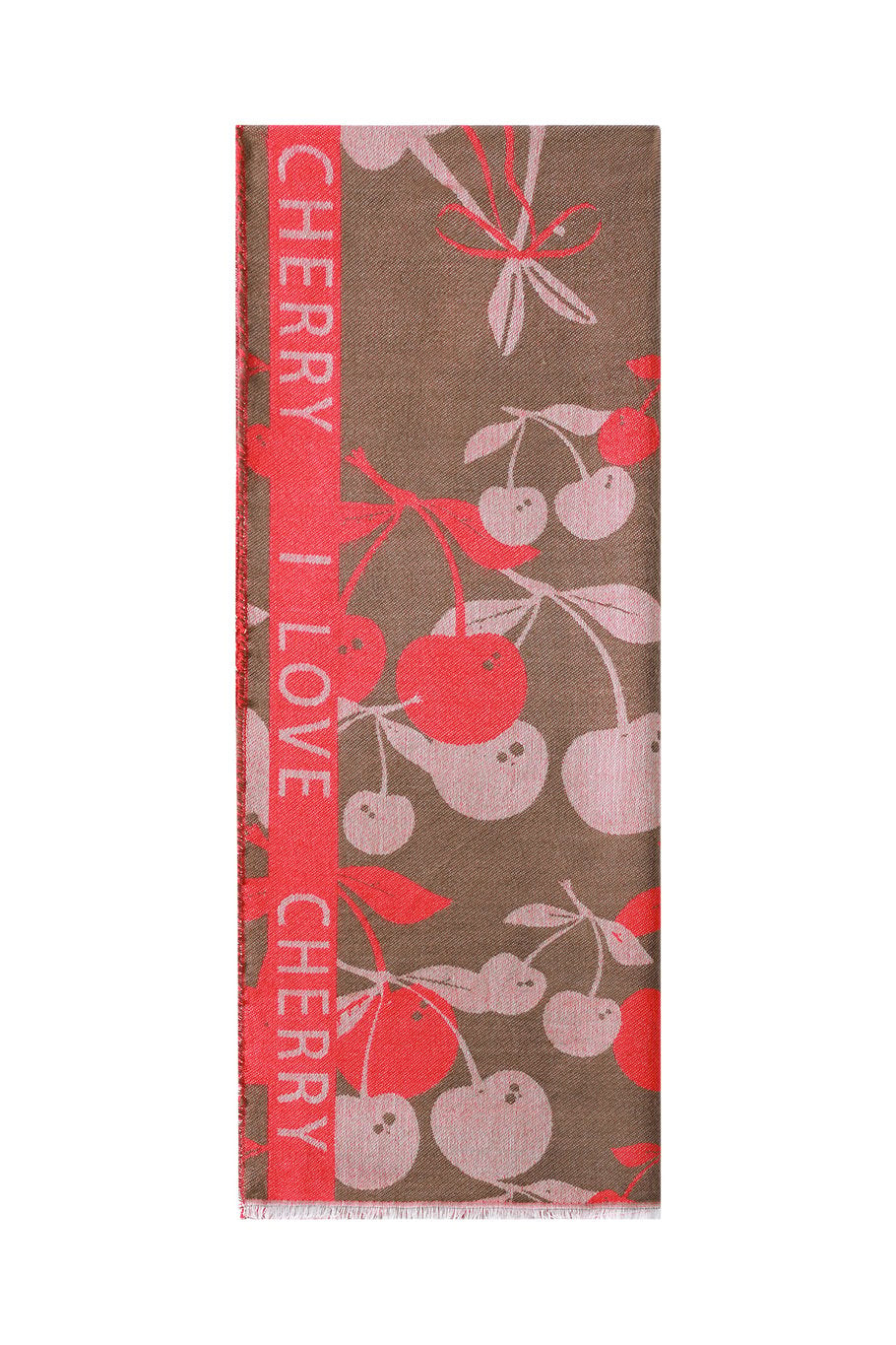 Een heerlijke warme sjaal met kersen print. Deze sjaal is lekker ruim en heeft kleine franjes aan de uiteinden. Een wintersjaal die je warm houdt tijdens het gure weer.
